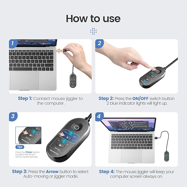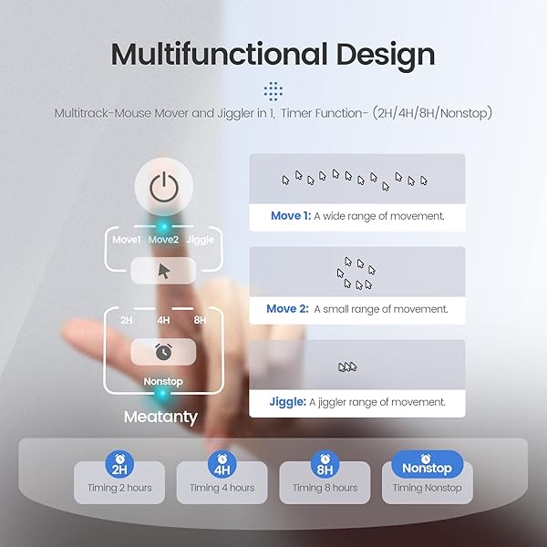 meatanty 3 in 1 Mouse Jiggler USB Mouse Mover with Timer, Separate Mode Selection and ON/Off Button, Mouse Shaker Wiggler Supports Multi-Track, Driver-Free and Plug&Play Keeps PC Active