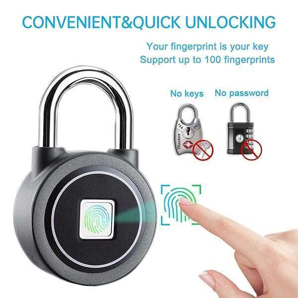 - Fingerprint Padlock, Bluetooth Lock, Mobile APP, MEGAFEIS Smart Padlock with Keyless Biometric, Water Resistant, Suitable for Gym, Sports, Bike, School, Locker and Storage(Grey) offers reliable performance and quality