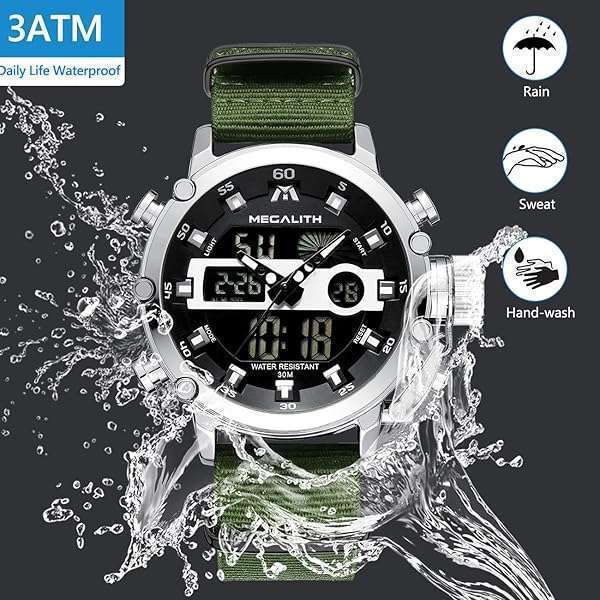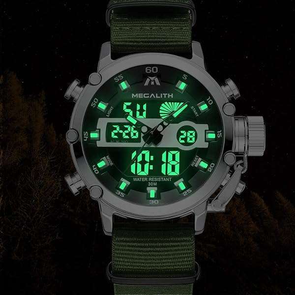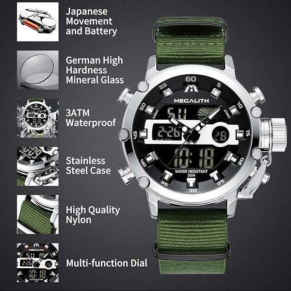 - MEGALITH Mens Watches with Nylon Waterproof Digital Military Sport Tactical Multifunction Heavy Duty Led Silver Watch for Men, Alarm Stopwatch provides reliable performance and quality- Imported: Japan movement and battery (Battery Life 3 Years), Replaceable watch band, Click Our Brand "MEGALITH" Above the Title to Explore More in Our Store