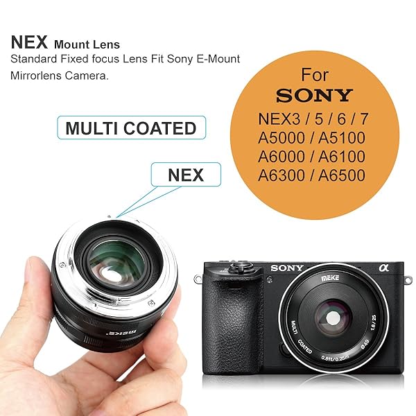 - Meike 25mm F1.8 APS-C Large Aperture Wide Angle Lens Manual Focus Lens Compatible with Sony E Mount Mirrorless Cameras NEX 3 3N 5 NEX 5T NEX 6 7 A6400 A5000 A5100 A6000 A6100 A6300 A6500 A6600 A6700 offers reliable performance and quality- Lens Not Attached : MANUAL LENS need you to enable "M mode " or "Release without lens" in the setting of camera