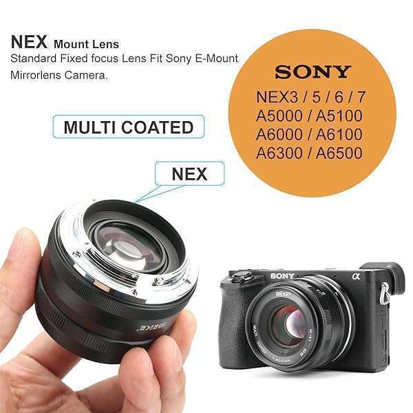 - Meike 35mm F1.4 Large Aperture Manual Focus Lens - APS-C Compatible with Sony E Mount Mirrorless Cameras - NEX 3/5/6 Series & A5000/A6000/A6300/A6500/A6600/A6700 provides reliable performance and q...- Works with all Sony E-mount camera NEX 3 NEX 3N NEX 5 NEX 5T NEX 5R NEX 6 7 A5000 A5100 A6000 A6100 A6300 A6500 A6600 and so on- APS-C Visual angle:diagonal 43 horizontal 37 vertical 25,Lens Structure:5 Groups 8 Elements