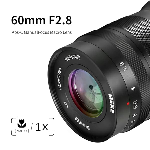 - Meike 60mm f2.8 Large Aperture APS-C Frame Manual Focus Prime Fixed Lens Compatible with Canon EF-M Mount Mirrorless Cameras EOS M M2 M3 M5 M6 M10 M50 M100 M6II M200 etc offers reliable performance and quality- Compatible with Canon EF-M Mount Mirrorless Cameras EOS M M2 M3 M5 M6 M10 M50 M100 M6II M200 etc- Lens construction: 8 groups 11 elements, aperture range of F2.8-F22, APS-C Angle of view: Diagonal 26.6