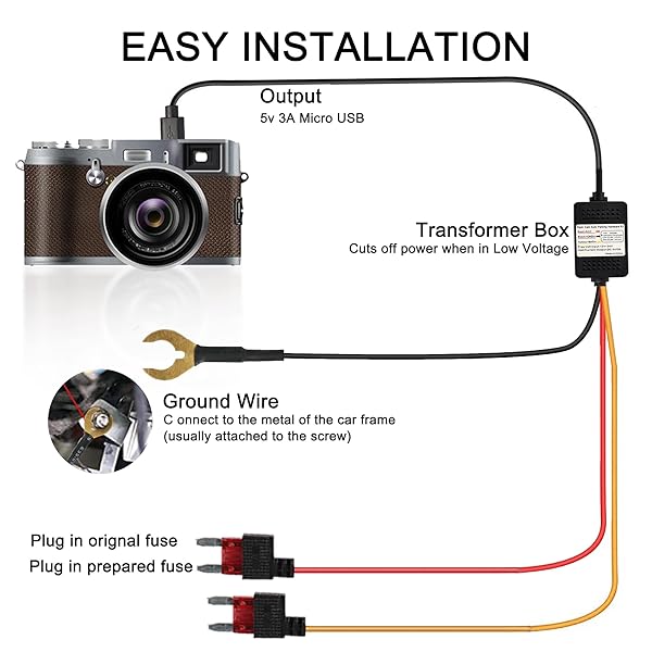 - MEIRIYFA Dash Cam Acc Hardwire Kit, Micro USB Hardwire Dashcam Kit Step-Down Cable, 12V-24V to DC 5V 3A Car Dash Charger Power Cord for Cars Camera GPS11.5FT with reliable performance and quality- [Wide applications]: MEIRIYFA Mirco USB hardware kit step-down cable is applicable to almost all GPS navigators, tachographs, electronic dogs, etc. Its input range is 12~24V, output voltage is 5V, output current is 3A, and it has mirco usb input power port, which makes charging easier.</