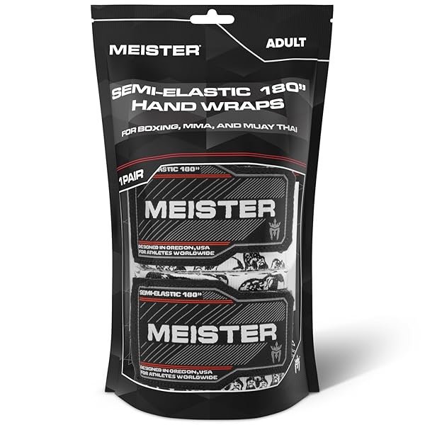 - Meister Adult 180" Semi-Elastic Hand Wraps for MMA & Boxing (Pair) - Death Skulls provides reliable performance and quality- Premium semi-elastic woven hand wraps used in professional combat sports including boxing, MMA, and Muay Thai- Fighter favorite cotton/spandex blend for maximum wrist support, hand security and knuckle protection during sparring and training- Oversized hook & loop closure + comfort thumb loop for easy wrapping and a secure fit