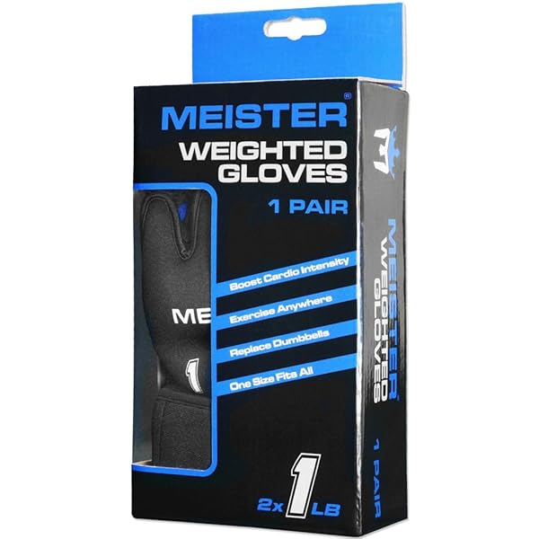 - Meister Elite 1lb Neoprene Weighted Gloves for Cardio & Heavy Hands (Pair) - 1lb x 2 - Black/Blue offers reliable performance and quality- Add weight resistance to any workout to increase strength and cardio intensity- Constructed with ultra-durable neoprene. Dense iron sand adds weight without bulk and conforms to hand- Exclusive ergonomic design with extended wrist wrap secures glove tightly and adds stability