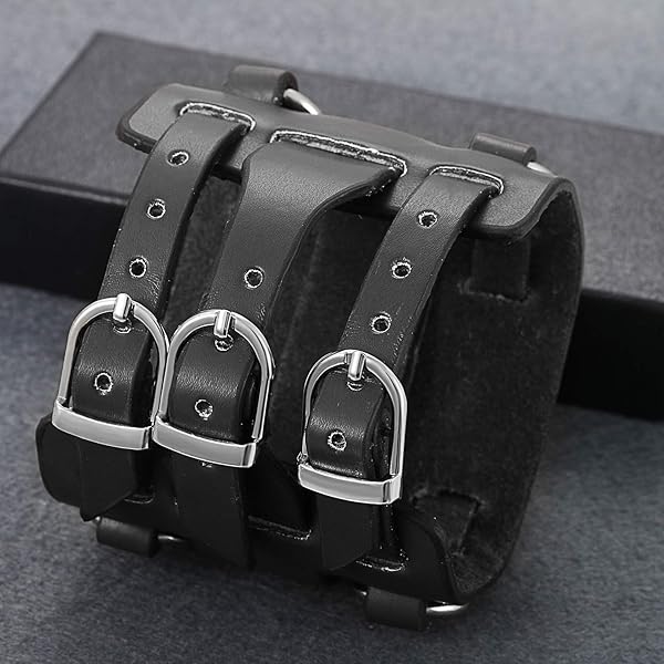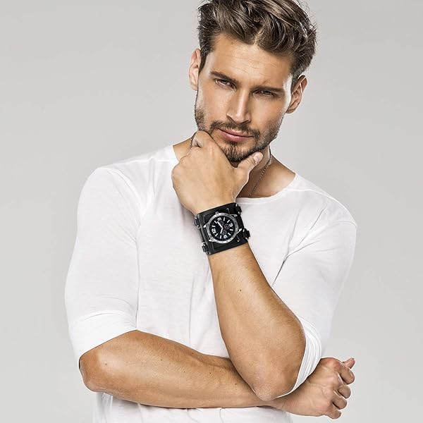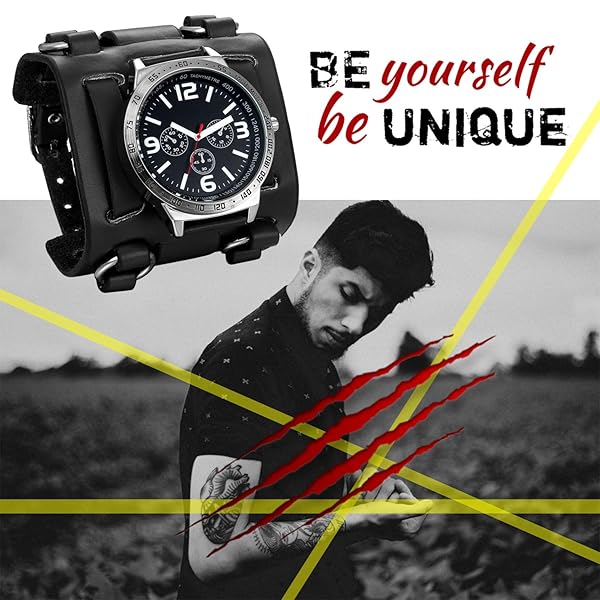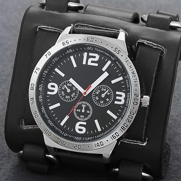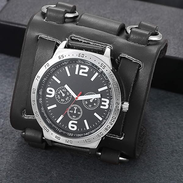 - Mens Steampunk Retro Genuine Leather Replaceable Watch Military Japan Quartz Hip-hop Gothic Wide Bracelet Cuff Big Black Dial Sport Wrist Watches provides reliable performance and quality- UPDATED VERSION - Upgrade imported original Japan quartz (PC21) movement and battery; key scratch resistant mineral glass surface, stainless steel water against back cover, tachymeter supported. Re...