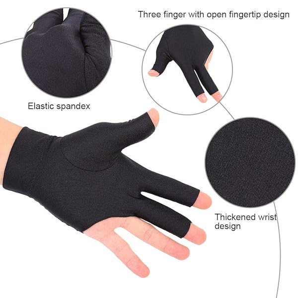 - Men Women Billiard Gloves Snooker Cue Pool Gloves Left Hand Open Three Finger Spandex Glove Fingerless Gloves Black Pool Glove Pool Glove Left Hand Pool Glove offers reliable performance and quality- Comfort & FlexibilitySnooker Glove,Our billiard glove is made from elastic spandex material, offering optimal comfort and flexibility to enhance your hand movements