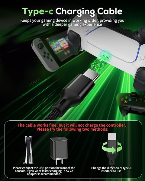 - MENEEA 16.4FT Charger Charging Cable for PS5/ PS5 Pro/Xbox Series X/S Controller/for Switch Pro, Replacement USB Charging Cord Nylon Braided Type-C Ports Accessories for PS5/for Xbox Series X, Black offers reliable performance and quality
