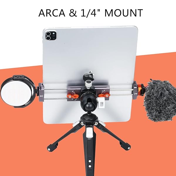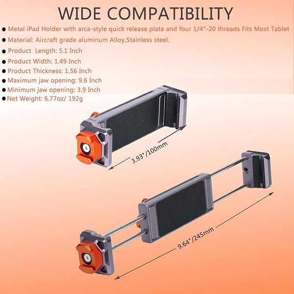 * Metal iPad Tripod Mount Adapter, Tablet Holder with Rotatable Cold Shoe Mount - Compatible with iPad Pro, Air, Galaxy Tab, iPhone: features: * Metal Tablet Holder with arca-style quick release plate and three 1/4"-20 threads Fits Most Tablet Like (for * Compatible for iPad 2021 2020 2019 2018 2017 9.7"/10.2" mini 5 4 3 2 1 Pro 9.7inch/10.5inch air 3 2 1 7 6 5 4 3 2 * Compatible for Samsung Galaxy Tab S6 S5E S4 S3 S2 S E A 4 3 2 Pro (7" * 8.4"