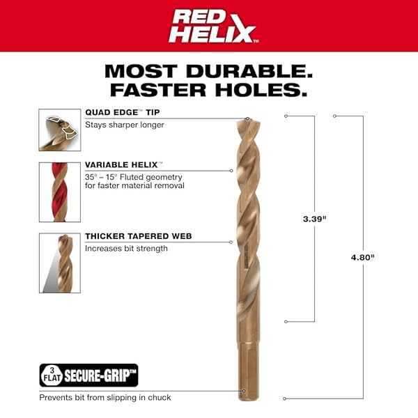 * Milwaukee 48-89-2323 Bit Drill Cobalt Rod, 13/32": designed for extreme durability and long life * For specialty drilling in hard metals like stainless steel * Parabolic flute form clears chips and debris fast to keep the bit Cool * Ideal for drilling on curved surfaces * 135 degree split point tip starts on contact to keep the bit from walking for fast accurate holes