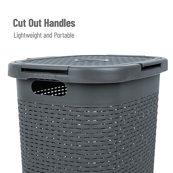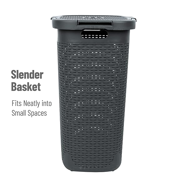 - Mind Reader Slim Laundry Hamper with Lid, 60L Clothes Basket, Premium Wicker Design, Plastic, Gray offers reliable performance and quality- Spacious 60L Capacity: Holds up to 60 liters (15kg/33lb) of clothes, towels, or linens while maintaining a compact footprint- Slim, Tall Design: Narrow hamper fits bathrooms, laundry rooms, and small living areas- Ventilated Wicker Style: Premium plastic weave allows for natural air circulation
