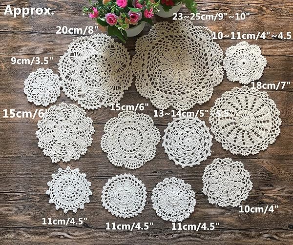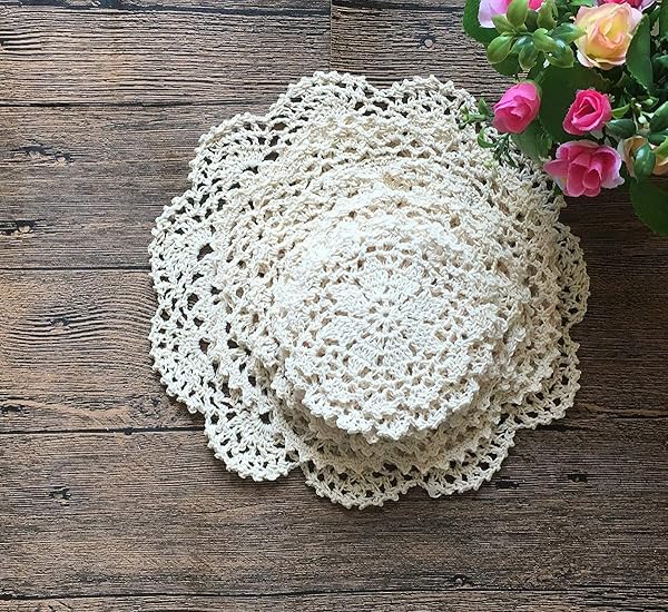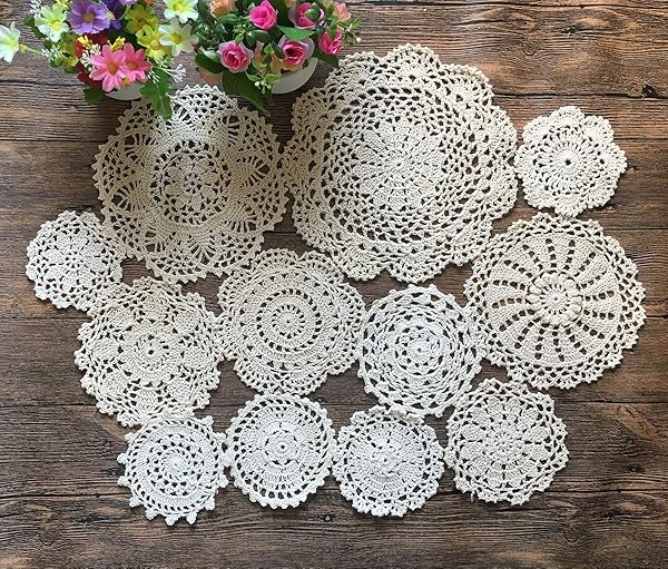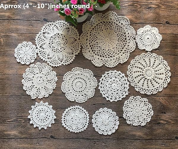 - MINDPLUS Set of 12 Hand Crochet Doilies Cotton Crocheted Lace Doilies 4-10 Inches Round Beige (12pcs Beige): reliable performance and quality- Variety pack-These Crochet doily lace set comes with nice variety of- Material- MINDPLUS hand crocheted doilies are made from 100% premium- Size-Approx.4" to 10" in diameter round doilies each,Set of 12- Home decorate in daily life and special occasion-Perfect to be used