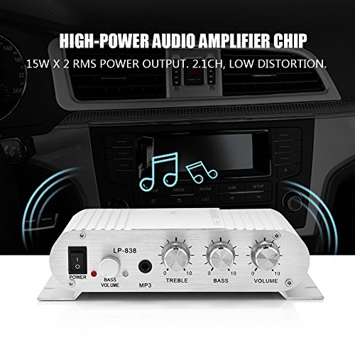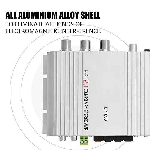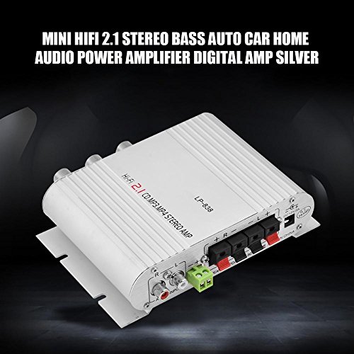 - Stereo Audio Amplifier, Mini HiFi 2.1 Stereo Bass Car Home Audio Power Amplifier, Professional Digital Amp for Use on Your Carrier or at Home (Silver) offers reliable performance and quality- High Power Audio Amplifier Chip: HiFi Audio Amplifier gives your entertainment or PA system a boost! Offers low distortion, acoustically accurate audio reproduction. Aluminum Alloy Housing, Eliminate all types of electromagnetic interference. Allows you to enjoy high-quality audio