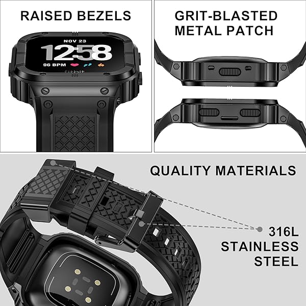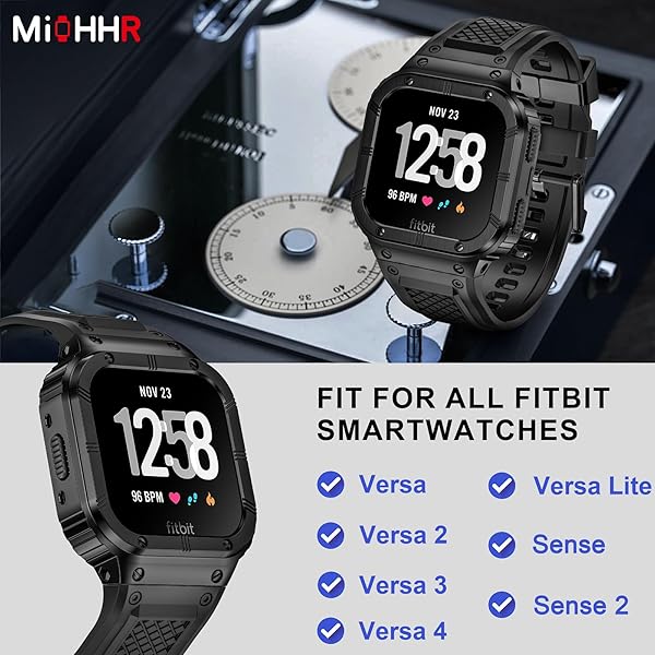 - MioHHR Stainless Steel Case and Band Compatible with Fitbit Versa 4/3/2/Lite/Sense/Sense 2 Bands with Metal Case, Rugged Sports Protector Cover Silicone Wristbands for Men, Black with reliable performance and quality- Perfect fit: Our adjustable band fits Fitbit Sense 2/1, Fitbit Versa 4/3/2/1, and fits Fitbit Versa Lite. Adjustable band length to fit wrist size: 6.2"- 8.5"- Ultimate Protection: The 316L stainless steel fitbit watch case is rugged and rust-resist, raised be