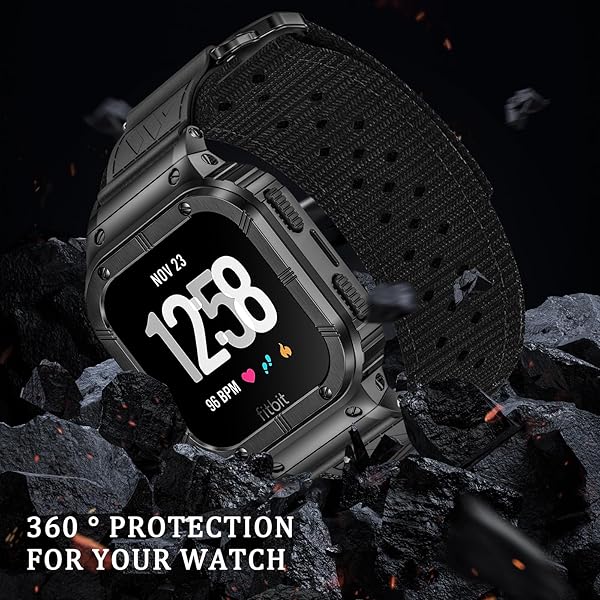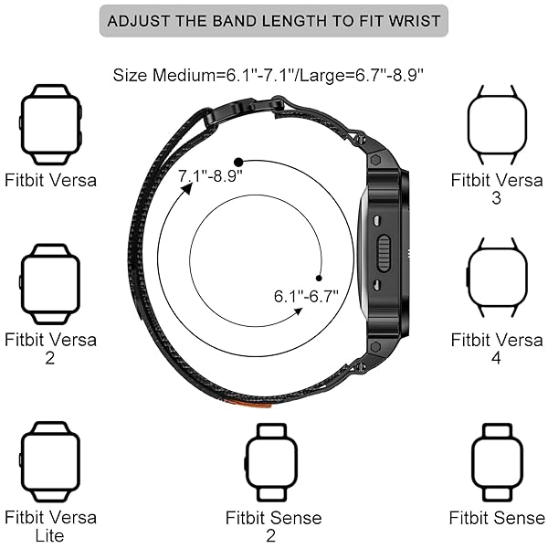 - MioHHR Band Compatible with Fitbit Versa 4 3 2 1 /Fitbit Versa Lite/Fitbit Sense/Sense 2 Bands with Stainless Steel Case, Breathable Nylon Sport Adjustable Strap Replacement Rugged Wristband for Men with reliable performance and quality- CompatibilityOur fitbit watch bands for women and men with stainless steel case compatible for Fitbit Versa 4/Versa 3/ Versa 2/Versa/Fitbit Versa Lite/Fitbit Sense 2/Sense. The size Medium=6.1''-7.1''/Large=6.7''-8.9'', (The WATCH NOT INCLUDED).</