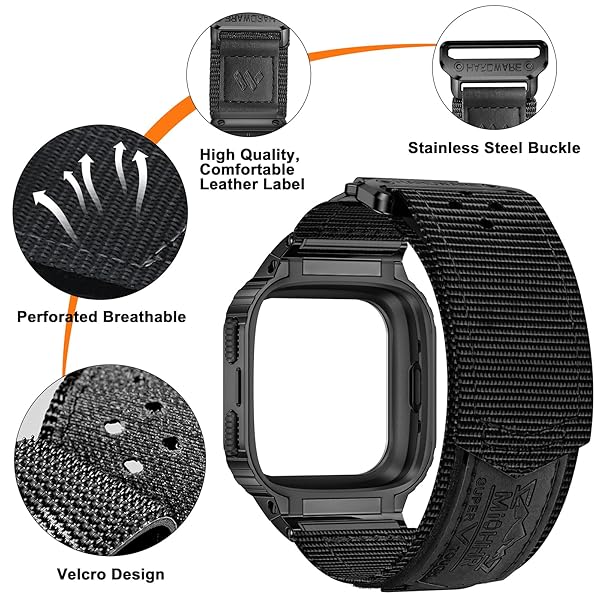 - MioHHR Band Compatible with Fitbit Versa 4 3 2 1 /Fitbit Versa Lite/Fitbit Sense/Sense 2 Bands with Stainless Steel Case, Breathable Nylon Sport Adjustable Strap Replacement Rugged Wristband for Men with reliable performance and quality- CompatibilityOur fitbit watch bands for women and men with stainless steel case compatible for Fitbit Versa 4/Versa 3/ Versa 2/Versa/Fitbit Versa Lite/Fitbit Sense 2/Sense. The size Medium=6.1''-7.1''/Large=6.7''-8.9'', (The WATCH NOT INCLUDED).</