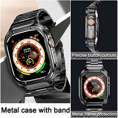 MioHHR Stainless Steel Band and Case Compatible with Apple Watch Band 49mm, Men Metal Protective Bumper Cover for iWatch Series Ultra 3 2 1, Black