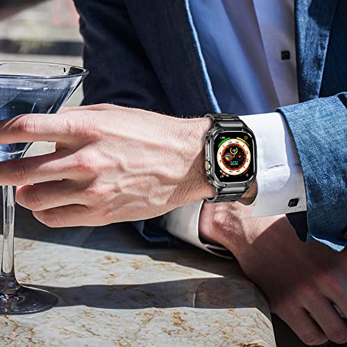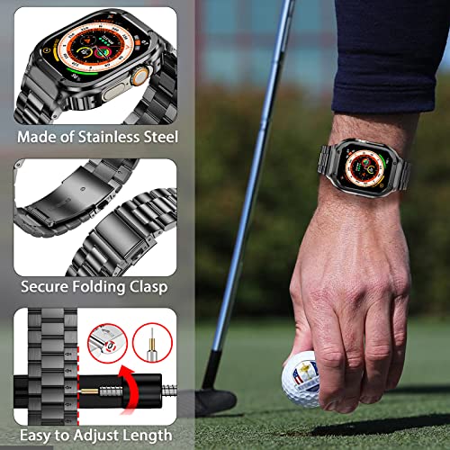 - MioHHR Stainless Steel Band and Case Compatible with Apple Watch Band 49mm, Men Metal Protective Bumper Cover for iWatch Series Ultra 3/2/1, Black with reliable performance and quality- Compatibility: Stainless steel watch band and case compatible with apple watch 49mm(Ultra 3/2/1), and the band fit wrists from 6.8"-9". Comes with tool to adjust the length, please follow the correct procedure to remove and adjust the strap to avoid damage- Safe and Durable: Metal case compa