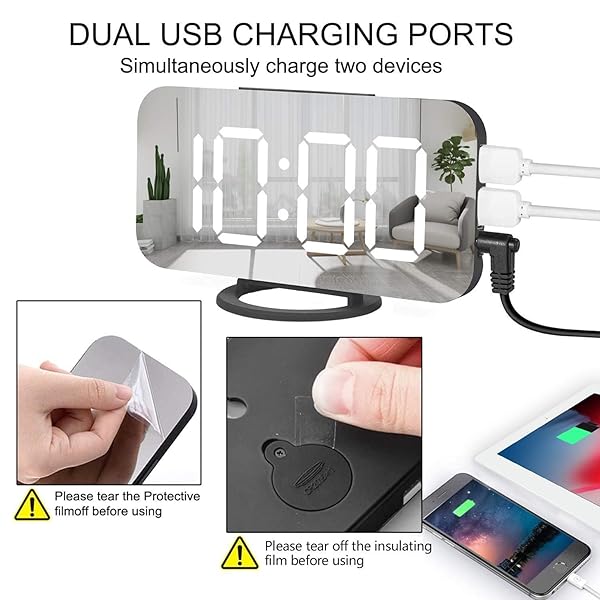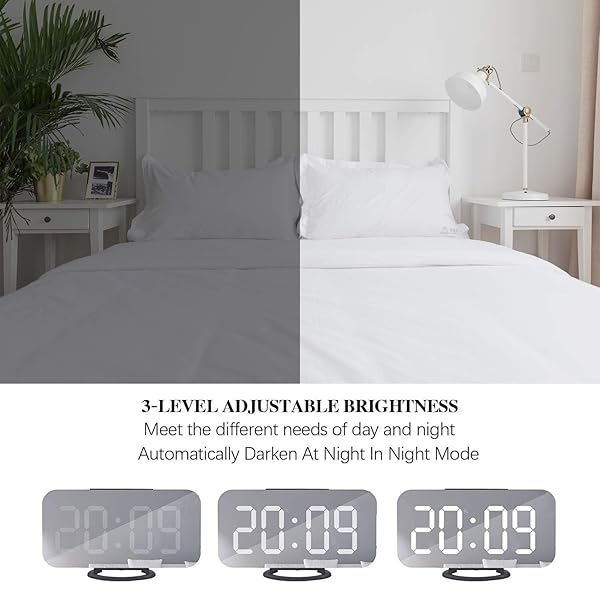 * Miowachi Digital Alarm Clock,Large Mirrored LED Clock,Snooze,Dim Night Light 2 USB Charger Ports Desk Alarm Clocks for Bedroom Decor (Black): easy operation and reliable: there is 3 buttons to set the time * Alarm clock,light,which is easy to set.As is known,the simpler it is,the more reliable * Adjustable Brightness: The 3 level brightness all make you see the time clearly,and the darkest light(L0) is dim enough for you to sleep at a dark envoironment,We take into account the various requires