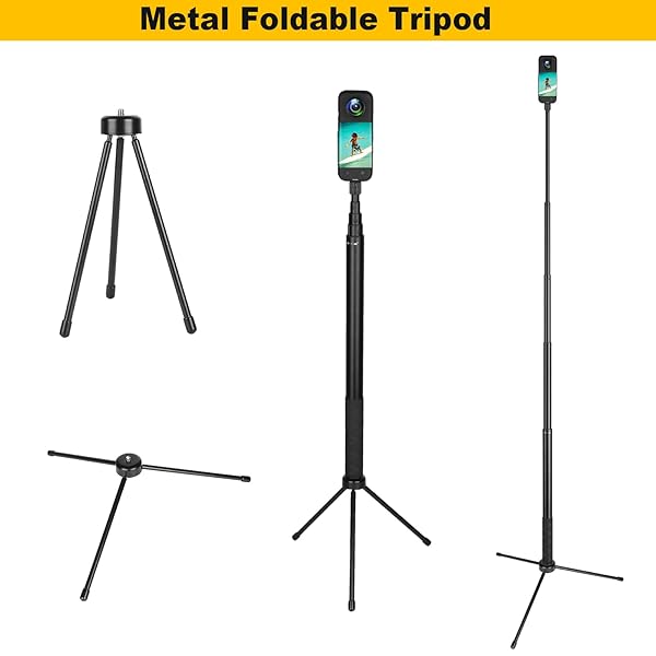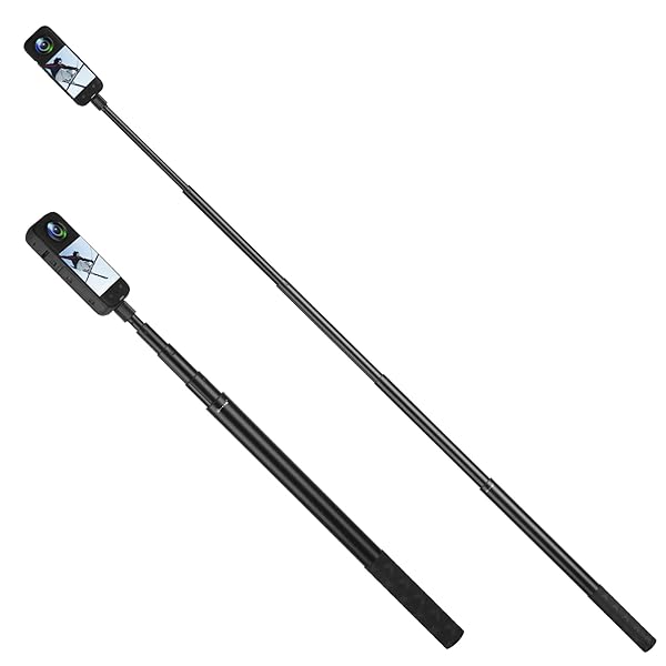 - 61.8 in Insta360 Invisible Selfie Stick with Tripod Accessory,Compatible with X5/X4/X3/X2/One RS/GO 2/3,GoPro Hero/DJI OSMO/SJCAM Action Cameras,Adjustable Extendable Waterproof Aluminum Alloy Rod with reliable performance and quality- Sturdy & Durable: Aluminum alloy,anti-rust stainless steel,silicone material construction design.Sturdy,durable,corrosion-resistant,wear-resistant,antiskid,maximum load capacity is 2.2 lbs /1 kg, holds camera security,suitable for using indoors and