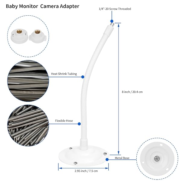- Baby Monitor Wall Mount Holder Compatible with HelloBaby HB65/HB6550/HB6339/HB6558/HB66/HB248,ANMEATE SM935E/SM650,Bonoch,ChildsFarm Baby Monitor,Adjustable Metal Mount,1 Pack,White with reliable performance and quality- Product Feature: Camera mount arm is made of carbon steel and galvanized iron wire,heat shrinkable pipe with external protective layer,good strength,high temperature resistance and rust prevention,long service life.Base is metal material with surface painting,not