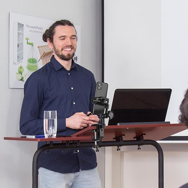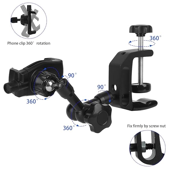 - Mippko iPhone Mount for Desk/Table/Rod/Kitchen Cabinet,360Adjustable Aluminum Alloy Phone Stand,Clip Holder Compatible with 3.5~7.5" iPhone/Nexus/HTC/Huawei/Smartphone with reliable performance and quality- qPattern Stand:Base bracket is the similar with "q" pattern,with three screw holes on the surface,two holes are standard 1/4 "- 20 threaded,the other one is 3/8" - 20 threaded, maximum size thickness clamped is 1.77 inches /4.5 cm.An external anti-skid rubber case being install