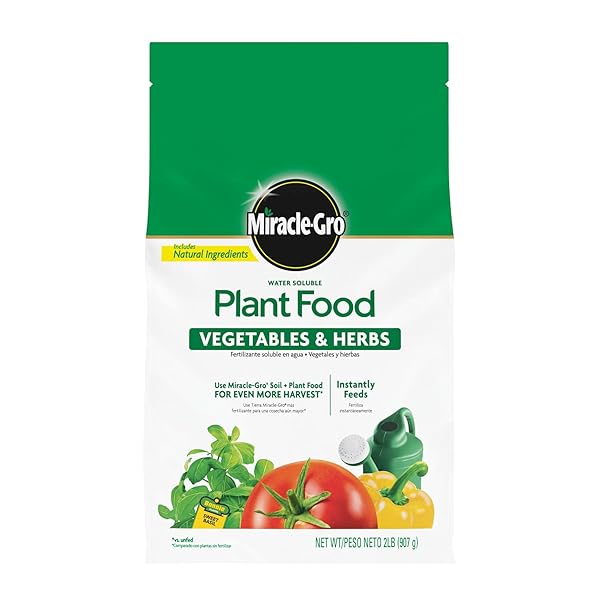 * Miracle-Gro Water Soluble Plant Food Vegetables & Herbs 2 lbs., 2-Pack: fresh vegetables and tasty herbs? you can grow them * And with Miracle-Gro * You'll enjoy a bountiful and delicious harvest * Miracle-Gro Water Soluble Plant Food Vegetables and Herbs feeds your garden instantly and easily * Simply mix the stated amount with water and feed every 7