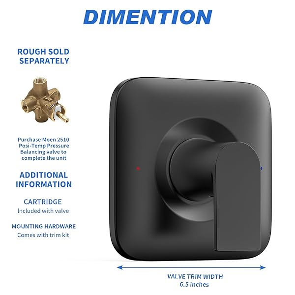 - T2471BL Genta LX Valve Trim Kit, Matte Black Shower Trim Kit Shower Handle, Compatible with Moen 2510 Valve offers reliable performance and quality- METAL CONSTRUCTION : Brass Escutcheon, Ensuring durability and dependability- AFTERMARKET PART : Compatible wtih Moen 2510, 2520, 2570, 2580, and 2590 Valve- EASY TO ADJUST - Lever style handle with red/blue temperature indicator on the escutcheon