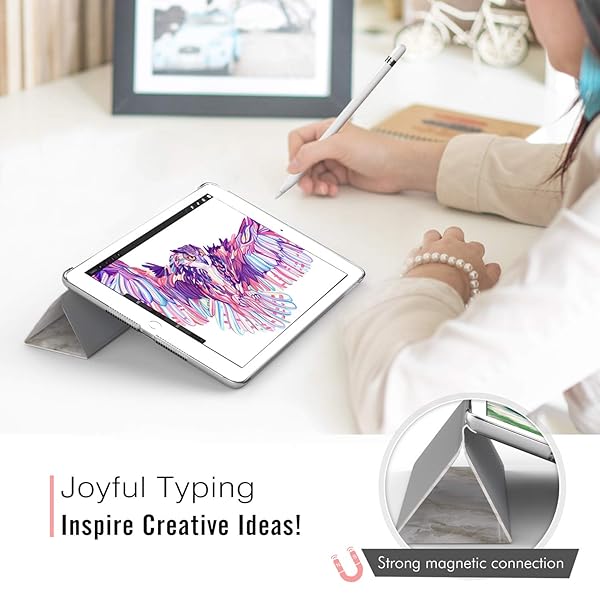 - MoKo Case Fit 2018/2017 iPad 9.7 6th/5th Generation, Slim Lightweight Smart-Shell Stand Cover with Translucent Frosted Back Protector Fit iPad 9.7 Inch 2018/2017, Auto Wake/Sleep - Light Gray Marble offers reliable performance and quality- Compatibility : Designed exclusively for Apple iPad 9.7 2018 (A1893/A1954) and iPad 9.7 2017 (A1822/A1823) tablet. Note: DO NOT fit other Tablet, NOT fit iPad 7th generation 10.2 inch. Access to all features and controls