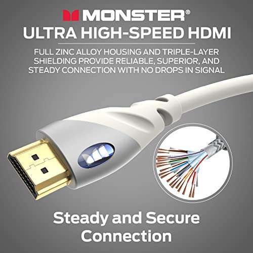 - Monster HDMI Cable 4k Ultra HD with Ethernet - Corrosion-Resistant 24k Rose Gold Contacts and V-Grip Connection - HDMI Cable for PS3 and Computer Monitor - 6 FT offers reliable performance and quality- HIGH-SPEED TRANSFER RATE: Monster's 4-foot HDMI cables are 4K certified with an ultra-fast data transfer rate of 18 Gbps and 60/120 Hz refresh rate for zero blur and minimal signal loss