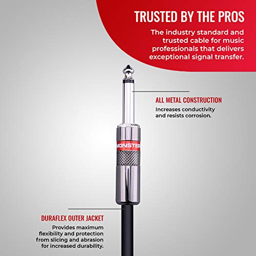 - Monster Prolink Classic Speaker Cable - 6FT Straight to Straight Instrument Cable - 1/4-Inch Plugs - Guitar Cord w/Superior Signal Transfer, Noise Reduction, Duraflex Outer Jacket offers reliable performance and quality- Trusted by the Pros: The Monster Prolink Classic Speaker Guitar Cables are trusted by music professionals for its superior performance, delivering amazing signal transfer for clear and crisp sound