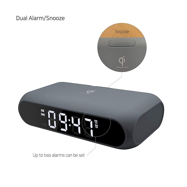 - mooas Qi Wireless Charging Slim Mirror Desk Clock (Charcoal Gray), Compact Digital Alarm Clock with USB Port, Wireless Charger for iPhone 15/15Pro/14/14Pro, Airpods, Samsung Galaxy S24/S23/S22 offers reliable performance and quality- Wireless Charging. It will start charging automatically if you place your phone that support wireless charging on the top of the clock