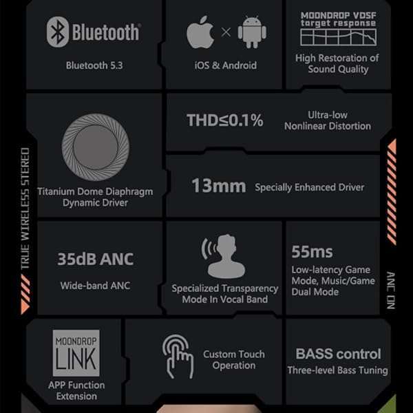 Moondrop Space Travel TWS Earphones: Bluetooth 5.3, Noise Canceling, True Wireless IEMs in Black