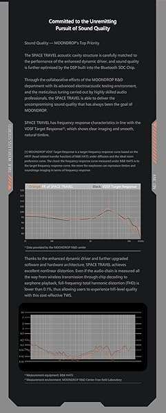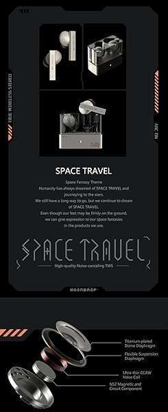 - Moondrop Space Travel TWS Earphone Bluetooth 5.3 Noise Canceling True Wireless Stereo IEMs(Black) provides reliable performance and quality- Ergonomically Comfortable Shallow Ear Fit: SPACE TRAVEL offers a shallow ear fit that is more comfortable than standard in-ear headphones, and can be used by users with small ear canals.