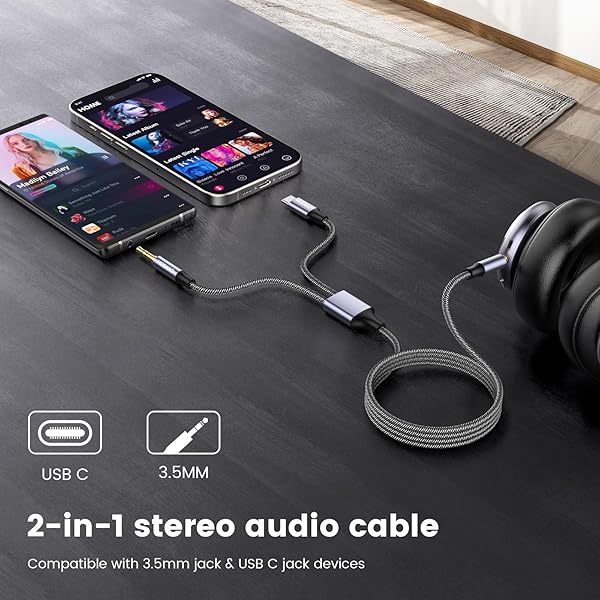 MOSWAG 2 in 1 3.5mm Aux Cable and USB C to AUX Adapter 3.28FT Male to Male for Headphones Car Home Stereo Speaker