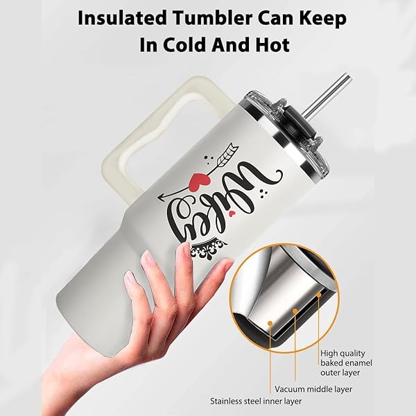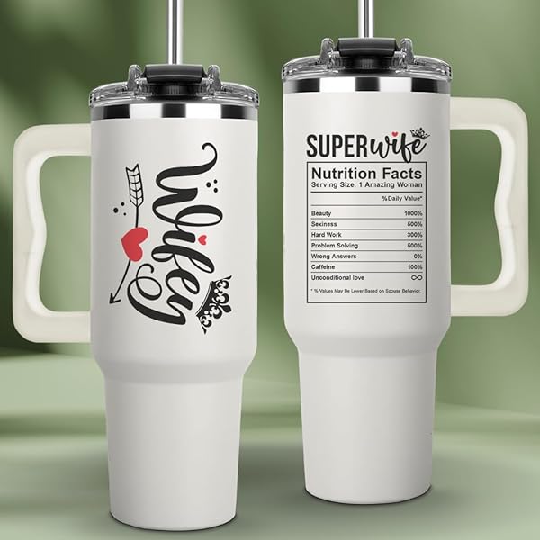 - Christmas Gifts For Wife - Wife Tumbler 40Oz from Husband, Wifey Gifts on Birthday & Anniversary, Present Ideas for Wifey Her, Cool Wedding Coffee Cup with Straw and Handle, Drinking Mug for Women offers reliable performance and quality