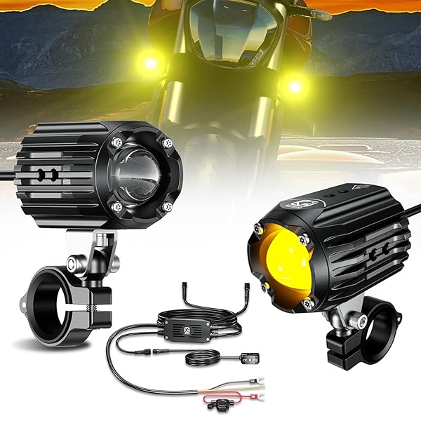 - Motorcycle Auxiliary LED Light Driving Spotlights White/Amber Fog Lights with Mount Brackets Wire Harness Waterproof Offroad Work Lights Compatible with Motorcycle J-eep Car Truck 60W Driving Lamps with reliable performance and quality- Scientific Design Concept: Kewig motorcycle led light is scientifically designed with high quality chips and high borosilicate optical lenses, The high quality chip gives it a high light transmission of up to 60W and 5000 lumens, the optical glass
