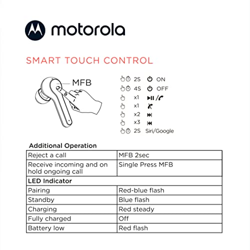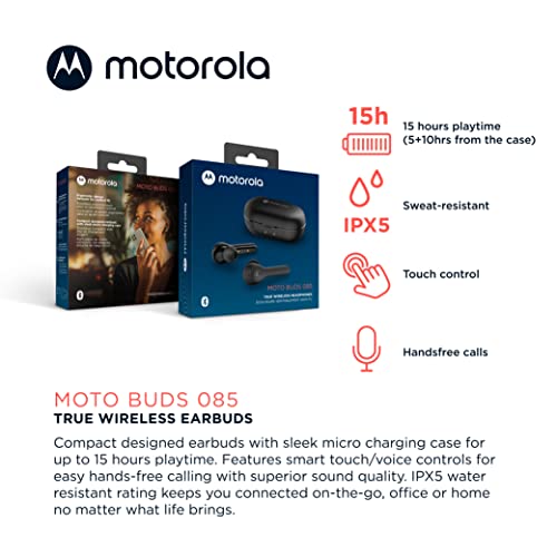Motorola Sound Buds 085 - True Wireless Bluetooth In Ear Earbuds With Microphone And Usb-C Charging Case-Ipx5 Water Resistant,Smart Touch-Control,Lightweight Comfort-Fit,Clear Sound&Deep Bass-Black