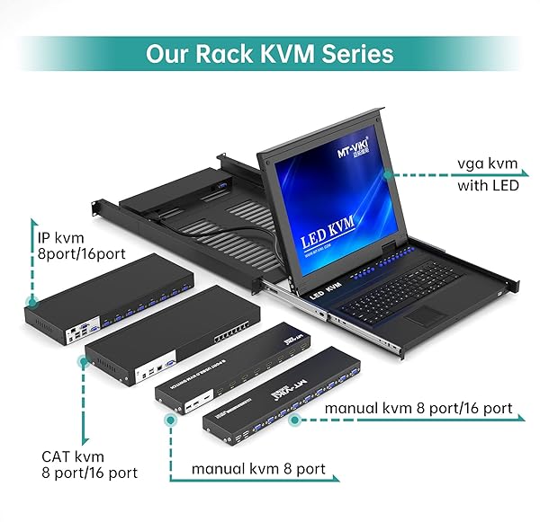 - MT-VIKI 8 Port KVM Switch HDMI, 4K@30Hz 1U Rack Mount KVM Switch w/IR Remote & Wire-Desktop Controller & 8 HDMI KVM Cables & Rack Ears & Power Adapter provides reliable performance and quality- MT-VIKI 801HK-C, this 8 port kvm switch hdmi allows you to manage up to 8 computers by 1 monitor, keyboard and mouse at 4k 30hz HD quality. Come with 4 USB 2.0 hub. Fit 1U 19'' Rack.