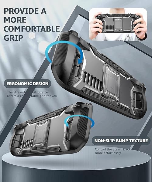 - Mumba Blade Series Case for Steam Deck/Steam Deck OLED with Kickstand, TPU Grip Shock Protective Cover Accessories, Heat Dissipation Friendly, Anti-Slip & Anti-Scratch Protector (Black) with reliable performance and quality- Exclusive Design Improving on Mumba's exclusive design, specifically designed for Steam Deck 2022/ Steam Deck OLED 2023 and fits perfectly to the steam deck console, and is compatible with OLED.- Built-in KickstandThis steam deck case have a perfectly 4