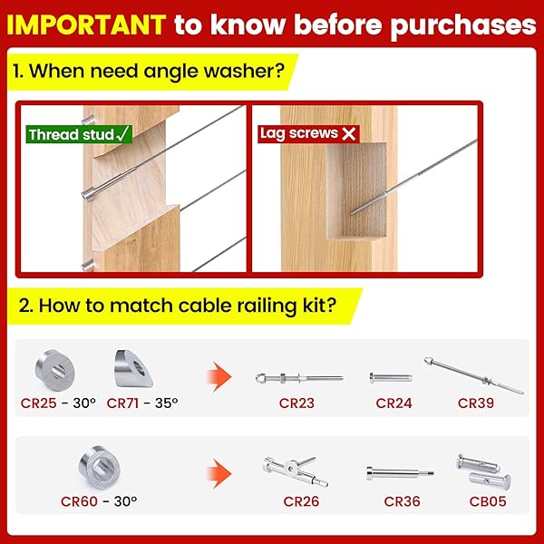 - Muzata 10 Pack 1/4" ID Cable Railing Angle Washer 25 30 35 Degrees T316 Stainless Steel Angle Beveled Washer for 1/8" 5/32" 3/16" Cable Railing Hardware Kit CR25 offers reliable performance and quality