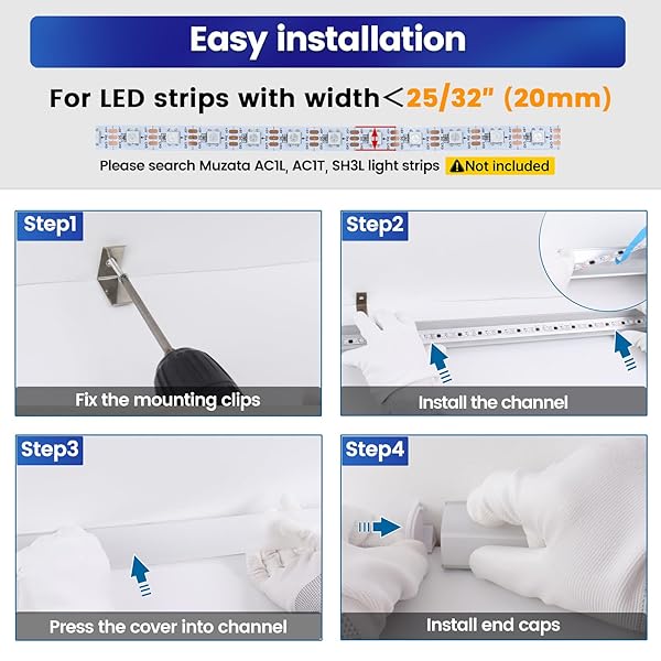 * Muzata 10Pack 3.3FT/1M Plus-Size Spotless V Shape LED Channel Silver Aluminum LED Diffuser Channel with Milky White Cover V101 WW 1M: muzata 10pack 3.3ft/1m plus-size spotless v shape led channel silver aluminum led diffuser channel with milky white cover v101 ww 1m * Plus size LED Channel: Muzata V101 LED channel offers an plus size design at 30x30mm * Making it ideal for installing dual light strips or waterproof LED strip * This unique size significantly enhances the lighting effects within