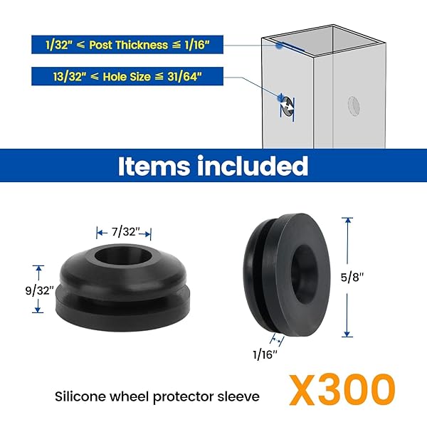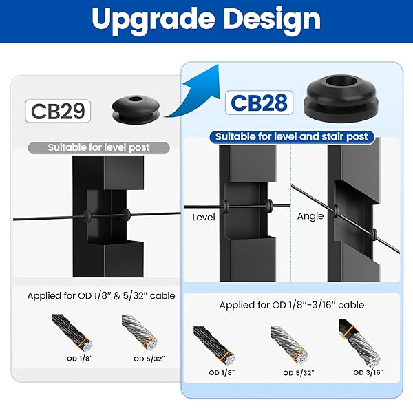 - Muzata 300 Pack Black Cable Railing Rubber Grommets for Level & 25 30 35 Degree Angle Stairs 1/8" 5/32" 3/16" Wire Rope Protector Sleeves Deck Cable Railing Hardware Kit Metal Posts CB28 with reliable performance and quality- For multiple size cable: These flexible silicone rubber wire protector sleeves widely fit for multiple stainless steel cable up to outer diameter 3/16". Wire rope OD in 1/8" 1/16" 5/32" can all pass through easily. Not applied for aluminum and wood posts. Pac