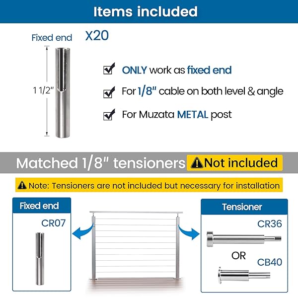- Muzata 20 Pack 1/8" Invisible Cable Railing Kit Hardware Cable Railing Toggle Anchor Terminal Fixed End for Metal Post T316 Stainless Steel Stair Angle Adjustable Deck One-Post Corner CR07 offers reliable performance and quality