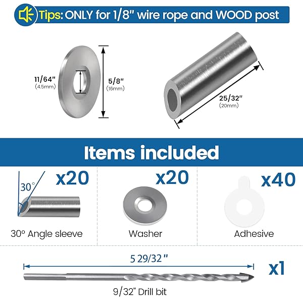 - Muzata 20 Pack 25 30 35 Degree Angle Adjustable Protector Sleeve for Wood Post Cable Railing Hardware for 1/8" Cable Railing System T316 Stainless Steel Cable Railing Kit CR68 offers reliable performance and quality