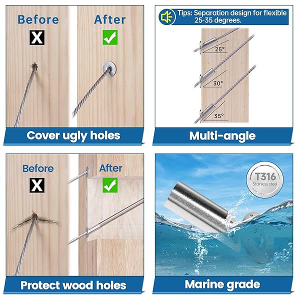 - Muzata 40 Pack 25 30 35 Degree Angle Adjustable Protector Sleeve for Wood Post Stair Railing for 1/8" Wire Rope Cable Railing T316 Stainless Steel CR68,CP1 offers reliable performance and quality