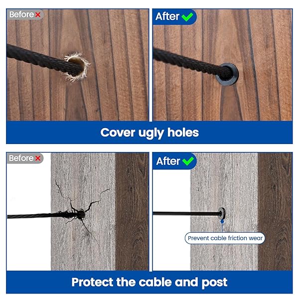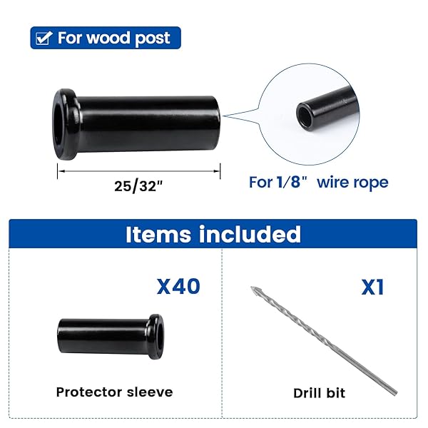 - Muzata 40PCS Stainless Steel T316 Protective Sleeves 1/8 Black Cable Railing Kit Hardware Protector Sleeve for 1/8" Wire Rope Wood Posts CR13 offers reliable performance and quality- For Wood Post in Level - These stainless steel black protective sleeves fits 1/8" wire rope on wood posts & wood posts with PVC sleeves. NOT for angle applications or metal posts. They prevent the wire rope from being damaged by friction wear