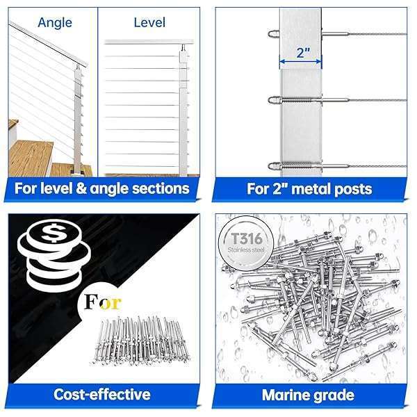- Muzata 50 Pack 1/8" Cable Railing Hardware Kit Hand Swage Threaded Stud Tensioner for 2x2 Metal Post T316 Stainless Steel Deck Cable Railing System CR23 offers reliable performance and quality