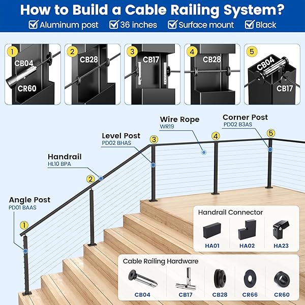 - Muzata 6'6" Aluminum Black Cable Railing Handrail Rectangular Handrail for Cable Railing System Top Rail Deck Stair Indoor Outdoor Length Adjustable with Paper User Guide HL10 BPA offers reliable performance and quality