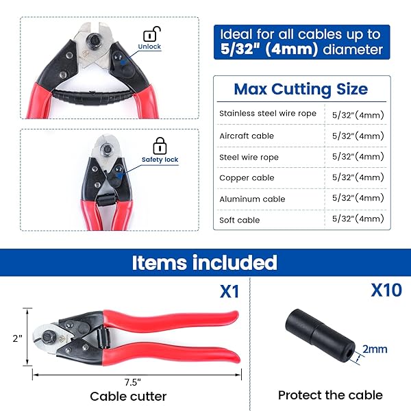 * Muzata Cable Cutter Heavy Duty Stainless Steel Wire Rope Cutter Aircraft Up to 5/32" for Deck Stair Railing Thick Seal Metal Fence Bike Bicycle Brake M015, CT1: high qualitythis cable cutter works excellent in cutting up to 5/32" wire rope cable of all kinds * It is widely used in industrial and home applications like cable railing * Fencing * Bike brakes * And other DIY projects